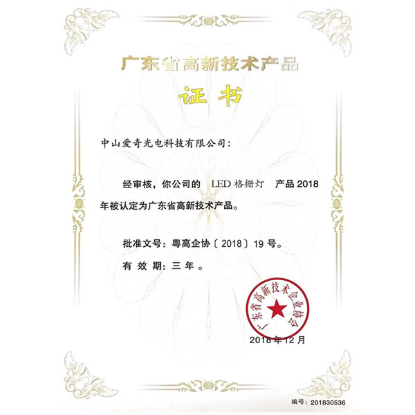 高新技術產品證書
