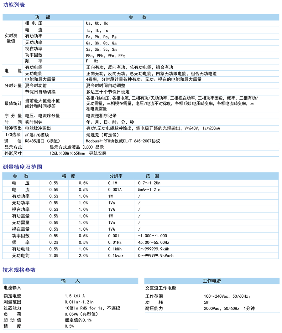 額定電流3*1.5(6)A,方便選用/5A標準電流互感器