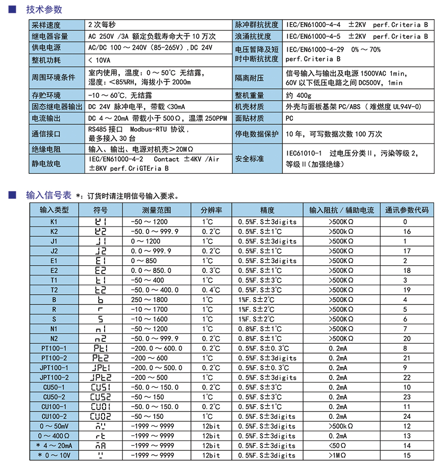 多種輸入信號類型可選,多種儀表型號可選