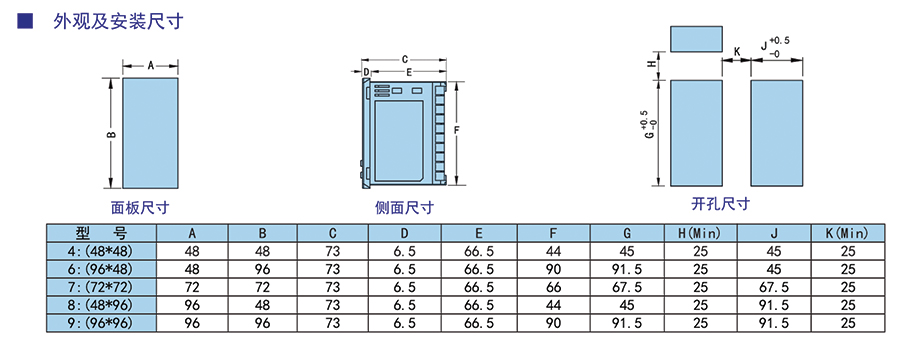 具有測(cè)量顯示、控制輸出、報(bào)警輸出、變送輸出、RS485通訊等功能