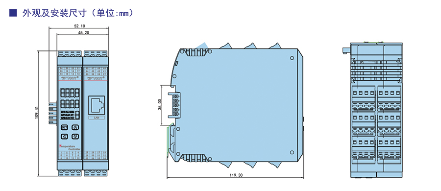具有8回路輸入功能,可以選擇多種熱電偶信號輸入類型,信號輸入通道之間AC 400V電氣隔離,可使用接地式探頭;
