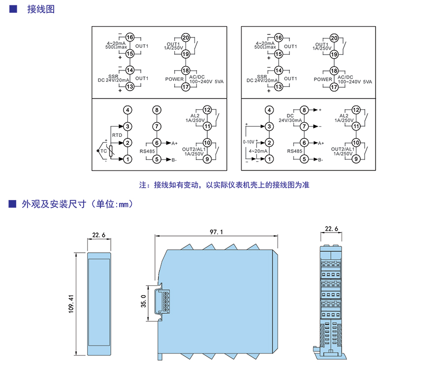 4~20mA/0~10V輸入帶DC 24V饋電輸出