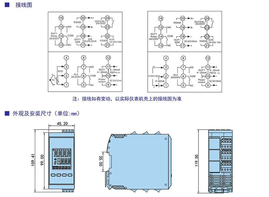 具有測量顯示、控制輸出、報警輸出、變送輸出、RS485通訊等功能