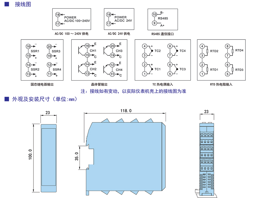 多種溫度傳感器可選,信號(hào)輸入間弱隔離,適用接地式探頭