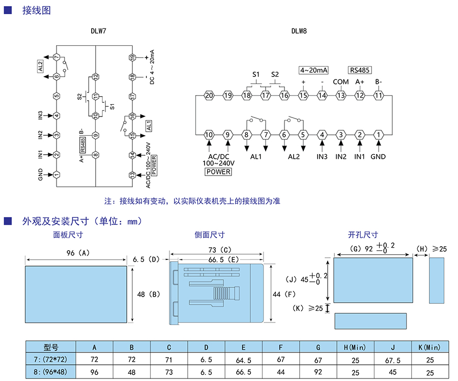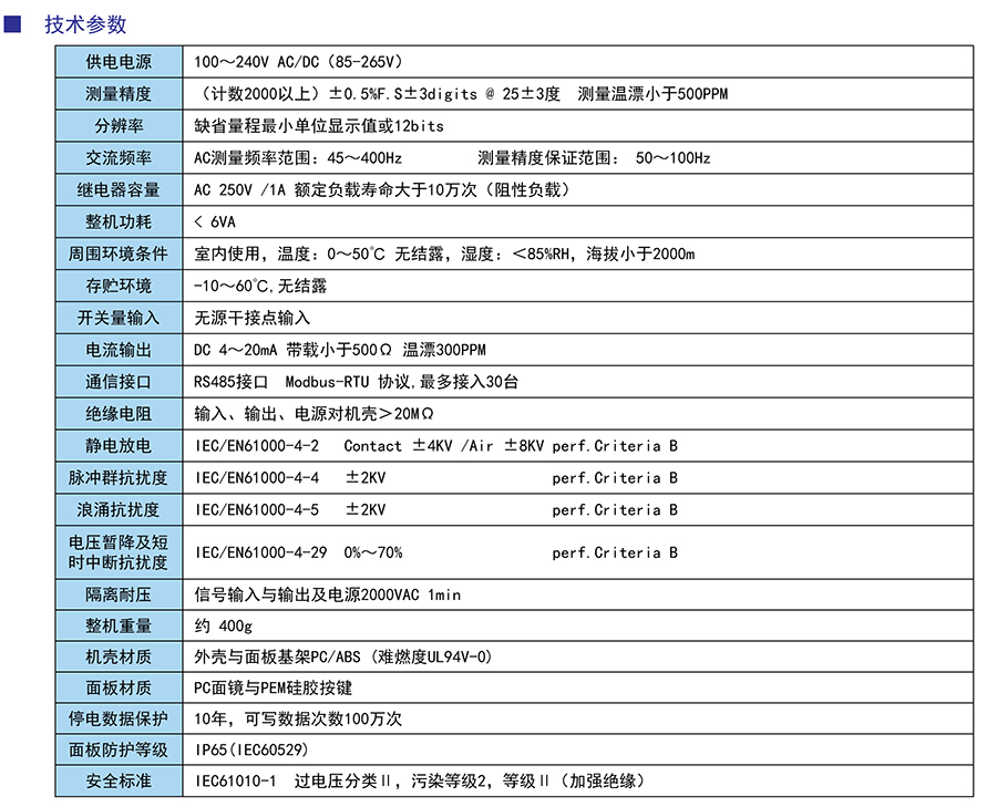 具有測(cè)量顯示、報(bào)警輸出、變送輸出、通信等功能