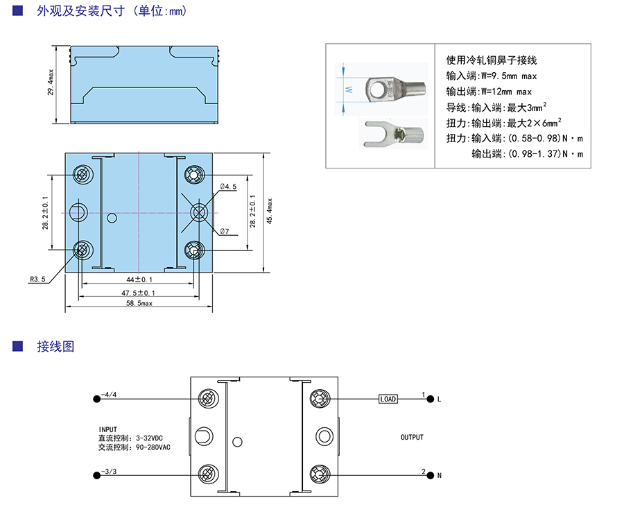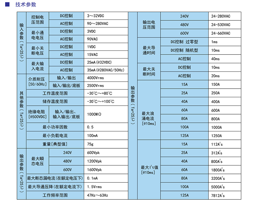 負(fù)載電流:15A-125A@24-660VAC